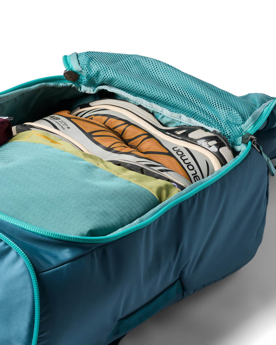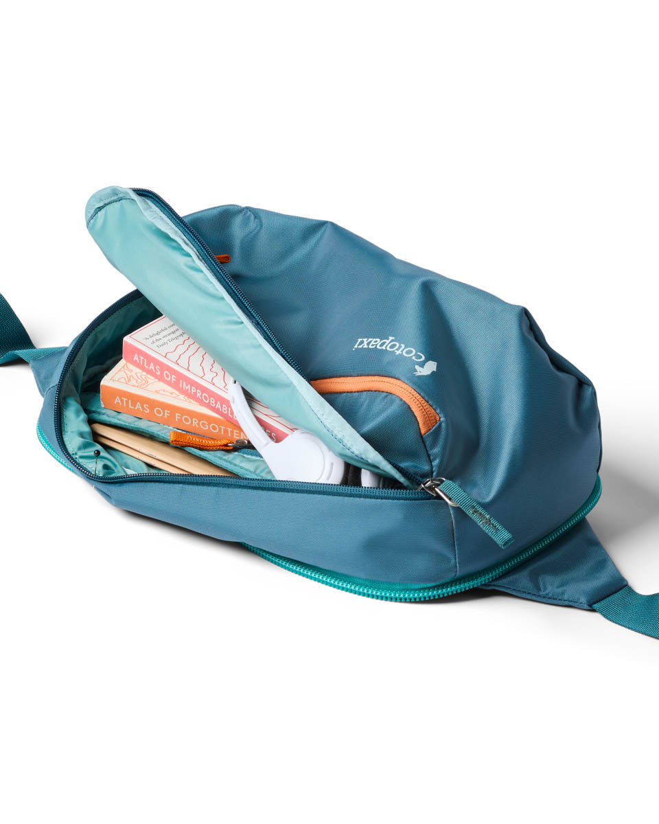 Das gepolsterte Rückenteil und die verstaubaren Hüftgurte sorgen dafür, dass der Rucksack auch auf längeren Strecken bequem sitzt. Das Hauptfach ist gross genug für alles, was du brauchst, und die Reissverschluss-Taschen helfen, deine Sachen organisiert zu halten. Die abnehmbare 8L Sling Bag ist dein praktischer Begleiter für kurze Ausflüge.
